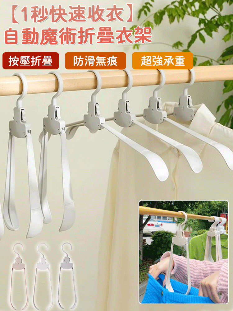【1秒快速收衣】自動魔術折疊衣架