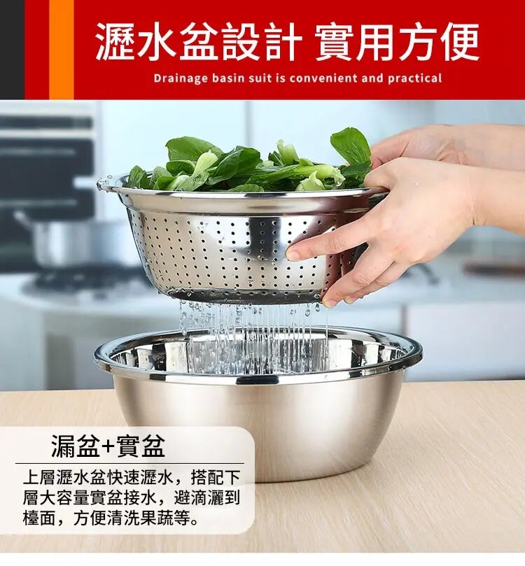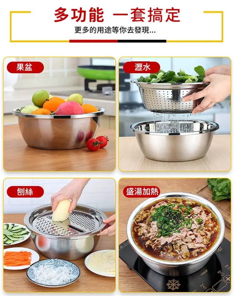 304不銹鋼刨絲盆三件套